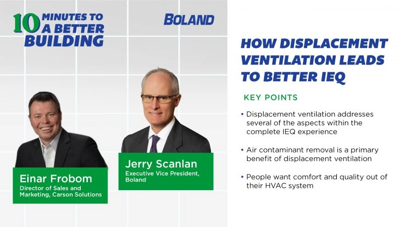 Indoor air quality isn’t the only aspect of building comfort that owners and those maintaining buildings need to consider. IEQ, or indoor environment quality, factors in many different considerations from noise to comfort and quality. Jerry Scanlan, Executive Vice President at Boland, and Einar Frobom, Director of Sales and Marketing at Carson Solutions, spoke with…