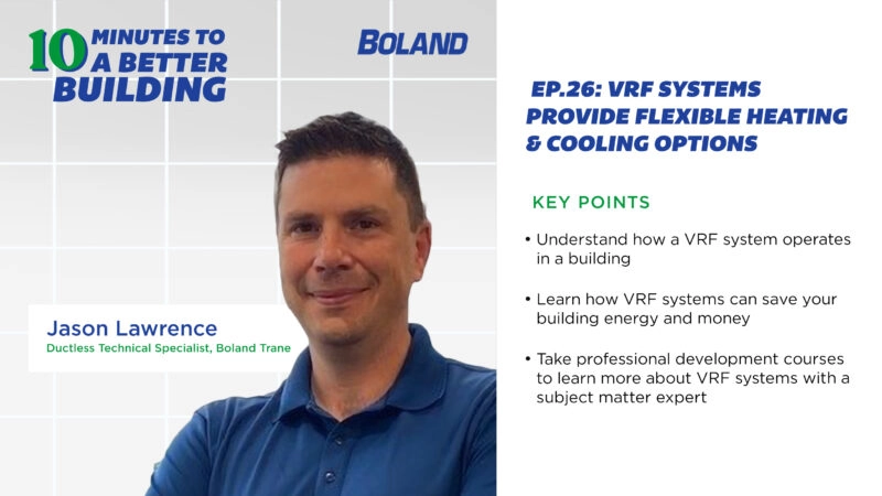 On this episode of 10 Minutes To A Better Building, Host Tyler Kern talked with Jason Lawrence, Ductless Technical Specialist at Boland Trane, which provides HVAC solutions and a network of more than 360 locations throughout the United States and Canada. They dove into VRF (Variable Refrigerant Flow), the ins and outs, and when VRF…