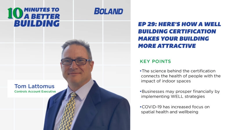 Living, working, and recreational environments can make all the difference when it comes to your health, mood, and wellbeing. Host Tyler Kern spoke with Tom Lattomus, Controls Account Executive at Boland, about the WELL Building Certification, which affords business owners the opportunity to positively impact these environments to improve health. The WELL Building Certification…