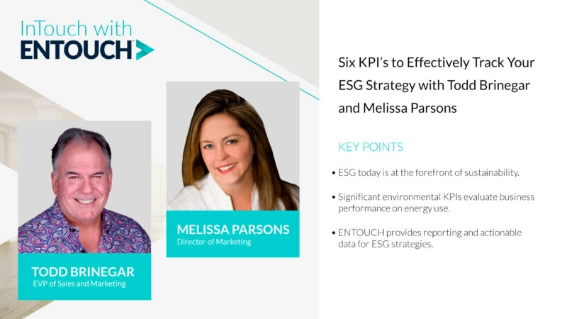 ESG entered the mainstream of business conversation 15 years ago. Today, companies know the importance of achieving environmental, social, and governance goals for their stakeholders. ENTOUCH’s Todd Brinegar, EVP of sales and marketing, and Melissa Parsons, director of marketing, shared their insights on ESG and six key performance indicators (KPIs) to effectively track ESG strategy….