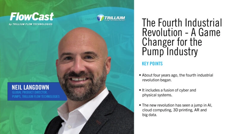 On this episode of FlowCast by Trillium Flow Technologies, host Courtney Echerd talked with Neil Langdown, Global Product Director of Pumps at Trillium, about the fourth industrial revolution in the pump industry. The first industrial revolution was mechanization, with things such as the water wheel, windmill and steam power. The second was around the early…