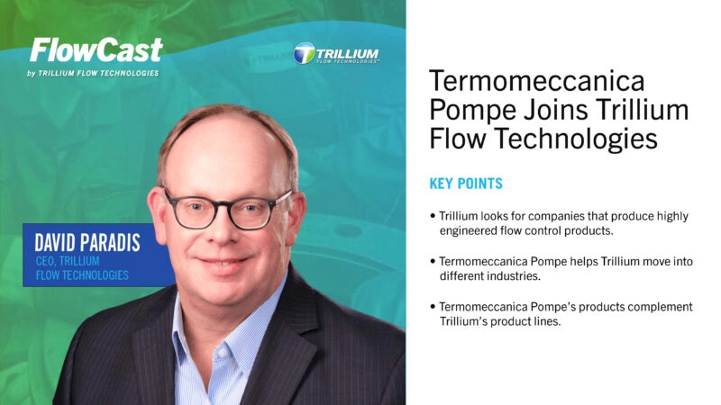 David Paradis, CEO of Trillium Flow Technologies, joined host Michelle Dawn Mooney to make an exciting announcement. Trillium recently completed the acquisition of Termomeccanica Pompe. Termomeccanica is a 110-year-plus company from Italy that offers an extensive range of highly engineered vertical turbine and split case pumps used in water transmission, desalination, power generation, and…