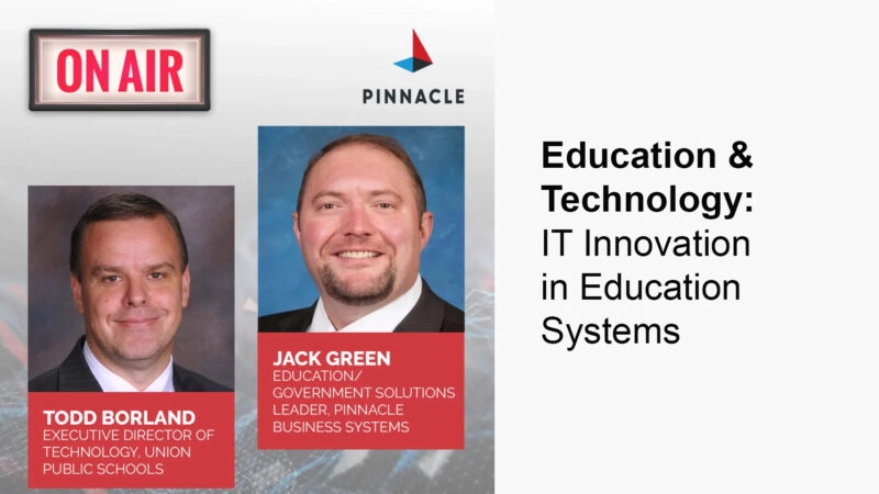 On this episode of On Air with Pinnacle, Host James Kent spoke with Todd Borland, Executive Director of Technology, Union Public Schools, Tulsa, OK, and Dr. Jack Green, Solutions Leader for PK-12 and Higher Education Partners, Pinnacle Business Systems about the evolving role of IT departments in education systems, from helping start eSports leagues in the…