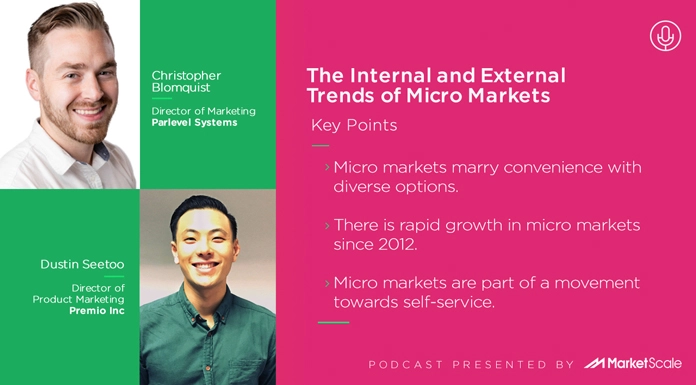 Christopher Blomquist, Director of Marketing at Parlevel Systems, and Dustin Seetoo, Director of Product Marketing at Premio, Inc., spoke on this episode of MarketScale’s Food and Beverage Podcast about the emergence of micro markets in the self-service vending machine industry. Technology and the increased desire for healthier choices are two drivers of micro markets….