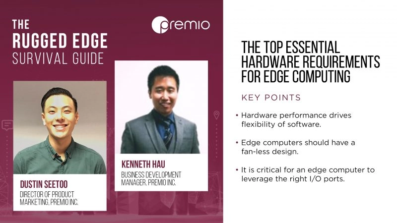 No edge computing survival guide is complete without knowing which hardware requirements are most essential for edge computing solutions to handle massive workloads. To provide those top standards on which edge computing professionals can rely, Dustin Seetoo, Director of Product Marketing, and Kenneth Hau, Business Development for Premio, stopped by the Rugged Edge Survival Guide…